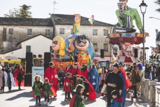 In Piemonte la provincia di Vercelli ci invita a gustare il Carnevale di Borgosesia. Che nel 2026 apre le danze il 25 gennaio con l’arrivo di Sua Maestà Peru Magunella a Magunopoli, questo l’antico nome della cittadina della Valsesia. Dall’1 al 15 febbraio sono in programma le sfilate dei carri allegorici e delle mascherate, grandi protagonisti i colossi di cartapesta usciti dalle abili mani di una delle più antiche scuole italiane, e tanti altri eventi. Come musica, proiezioni video e appuntamenti gastronomici. Gran finale il 18 febbraio, il Mercu Scurot (mercoledì delle Ceneri) con la lettura del Testamento del Peru, il rogo della Maschera e lo spettacolo pirotecnico di chiusura del Carnevale.