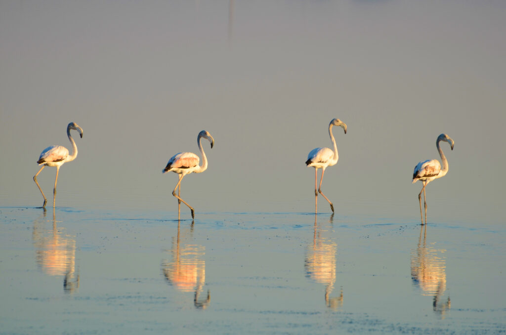Durante la nostra visita non siamo riusciti ad avvistare i fenicotteri: essendo animali liberi, la loro presenza dipende dalle condizioni ambientali, come il silenzio e il meteo. Proprio per questo, ogni escursione è diversa e autentica.