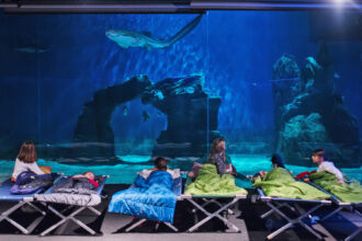 All’Acquario di Genova i bambini tra i 7 e gli 11 anni possono trascorrere una suggestiva esperienza alla scoperta dell’ambiente marino notturno. L’appuntamento di “Notte con gli squali” prevede una visita dell’Acquario per osservare come i suoi ospiti si comportano al calare del sole, la nanna davanti alla vasca dei predatori del mare, il risveglio e la colazione finale. Appuntamento almeno una volta al mese. Gli appuntamenti del mese: sabato 8 e 22 novembre. Prenotazione presso C-Way, tour operator dell’edutainment.