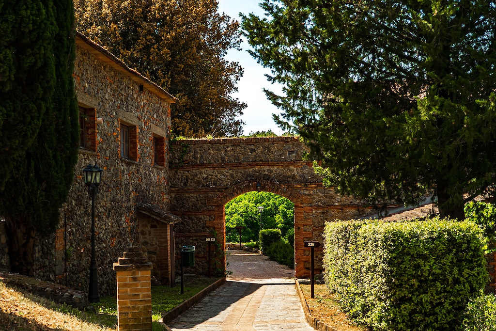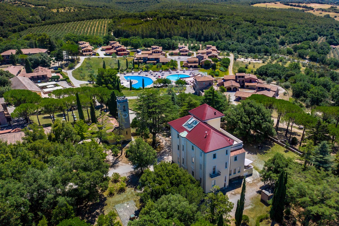 In particolare si trovano: Villa Moris, villa padronale in stile liberty di origine ottocentesca con camere e grande terrazzo panoramico; Palazzo Vittoria, cinto da cipressi e arricchito dalla piscina, con camere stile country toscano; Antico Borgo Mucini nel cuore del parco con camere e appartamenti smart e comfort in perfetto equilibrio tra stile e funzionalità; Torre, dove sorgono gli appartamenti premium in tenue stile country con terrazze o patii panoramici, e Ville, con appartamenti superior dotati di ampi spazi interni e terrazze o patii esterni, connotati da uno stile tipicamente toscano.