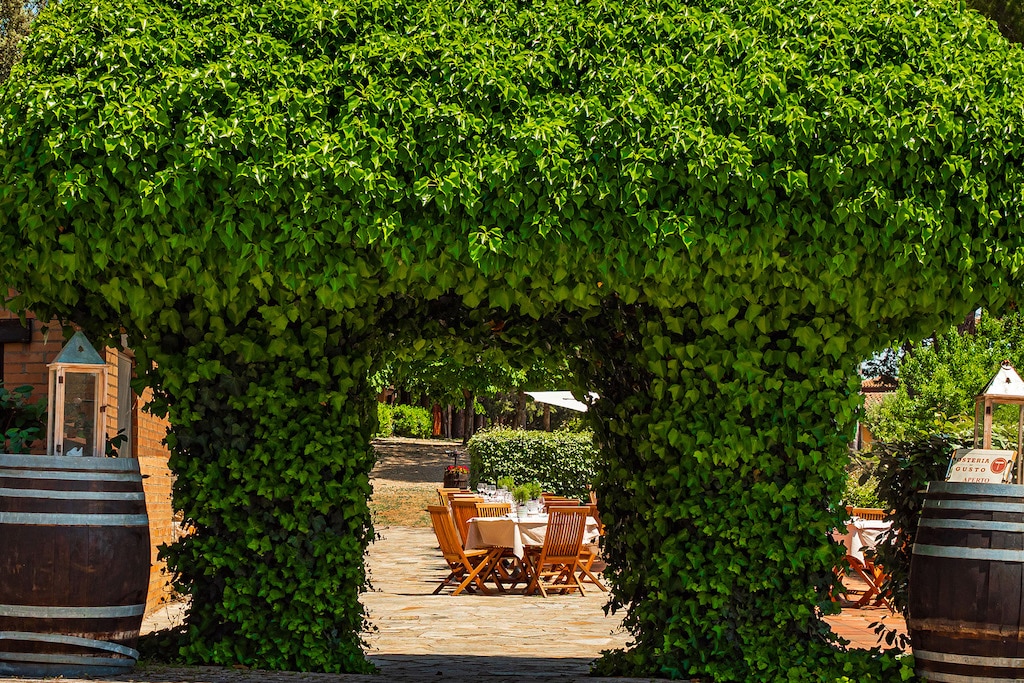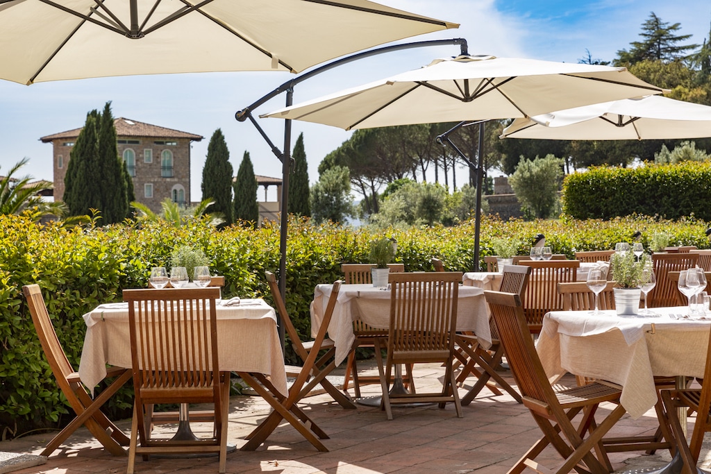 Viali fiancheggiati da macchia mediterranea collegano fra di loro i diversi casolari del borgo e a disposizione degli ospiti ci sono il RISTORANTE Belvedere, con specialità della tradizione toscana rivisitate con sapiente creatività accompagnate dai migliori vini del territorio, l’Osteria del Gusto e il Terrace Bar.